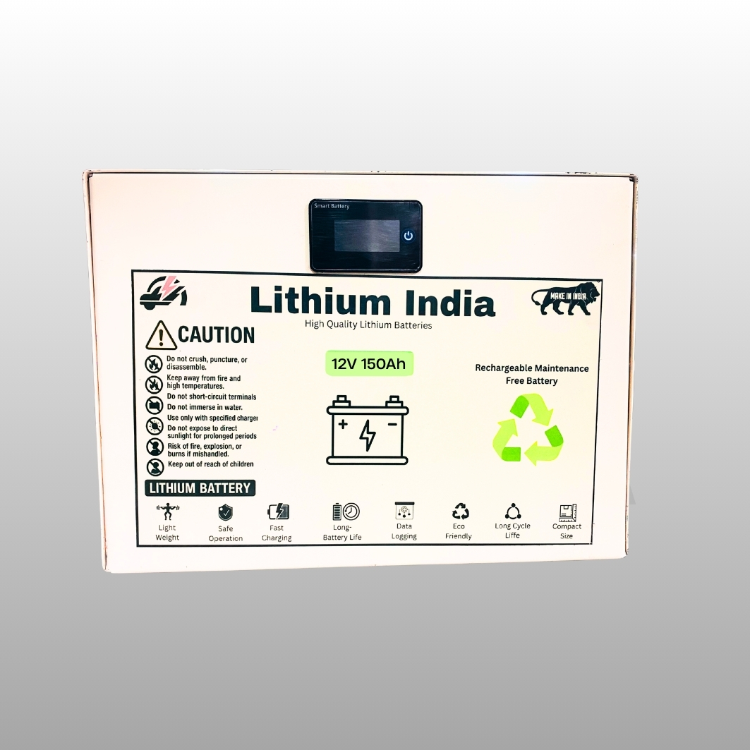 The LFP 12V 150Ah Home Inverter Solar Battery by Lithium India is a high-capacity Lithium Iron Phosphate (LiFePO4) battery designed for dependable home power backup and solar energy storage. Engineered for longer backup duration and efficient energy utilization, this battery ensures uninterrupted electricity supply during power outages and optimized performance in solar systems.